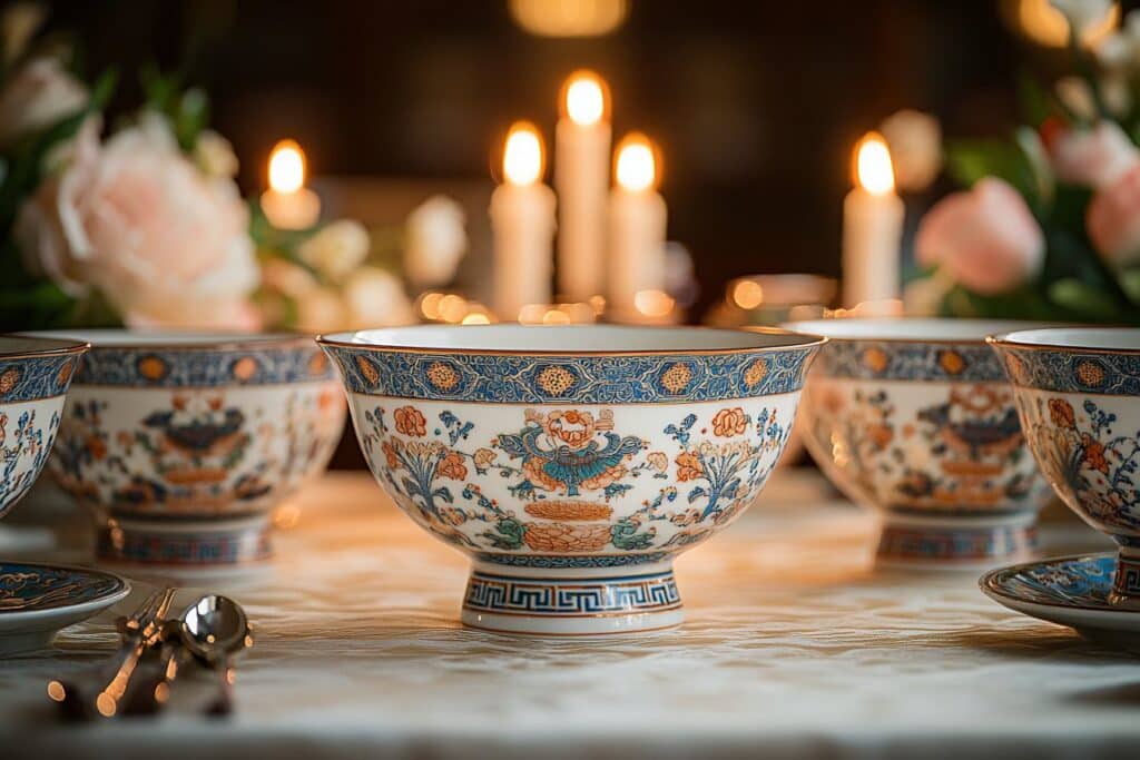 En parlant de l’art du dressage de table, pensez à utiliser des bols chinois comme pièces maîtresses lors de vos repas spéciaux. Associez-les à des nappes blanches classiques et des serviettes en lin pour un contraste saisissant. Ajoutez quelques bougies et des fleurs fraîches pour une atmosphère encore plus intime et chaleureuse.