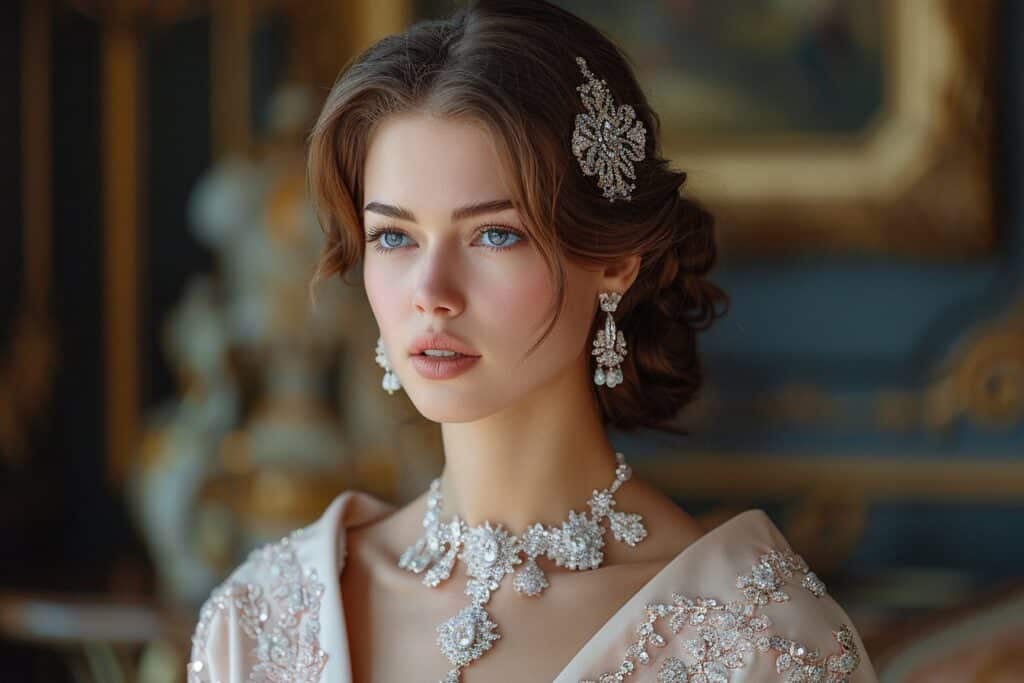 Le collier est probablement l’un des bijoux les plus visibles lorsque vous portez une robe princesse. Les colliers ras du cou sont particulièrement populaires car ils mettent en valeur le décolleté sans voler la vedette à la robe. Les modèles en strass ou en pierres semi-précieuses sont excellents pour ajouter cette touche d’éclat subtile mais efficace.